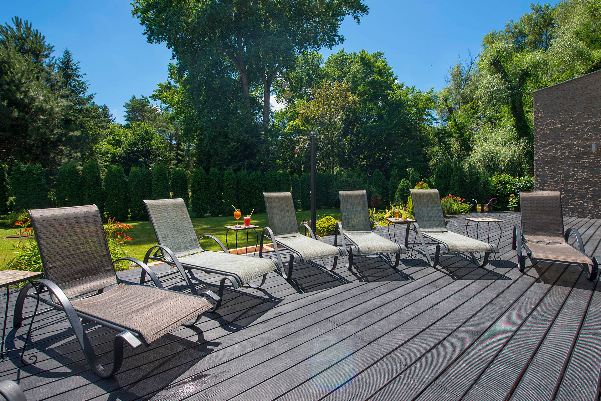 Für diejenigen, die gerne die Sonnenstrahlen genießen, gibt es eine sonnige Sommerterrasse mit Sonnenliegen und bequemen Sonnenliegen mit Dach. Auf dieser Terrasse können die Gäste entspannen, sonnenbaden und das schöne Wetter genießen.