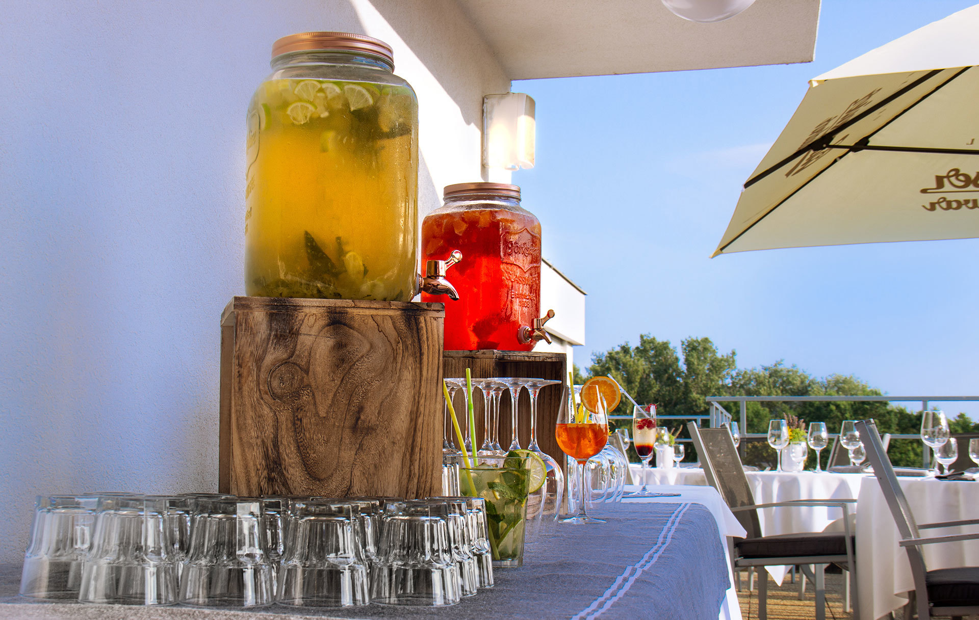 - nápoje počas hlavného stravovania (obedy a večere) v reštaurácii (pivo, víno, frizzante, káva, čaj, nealko)