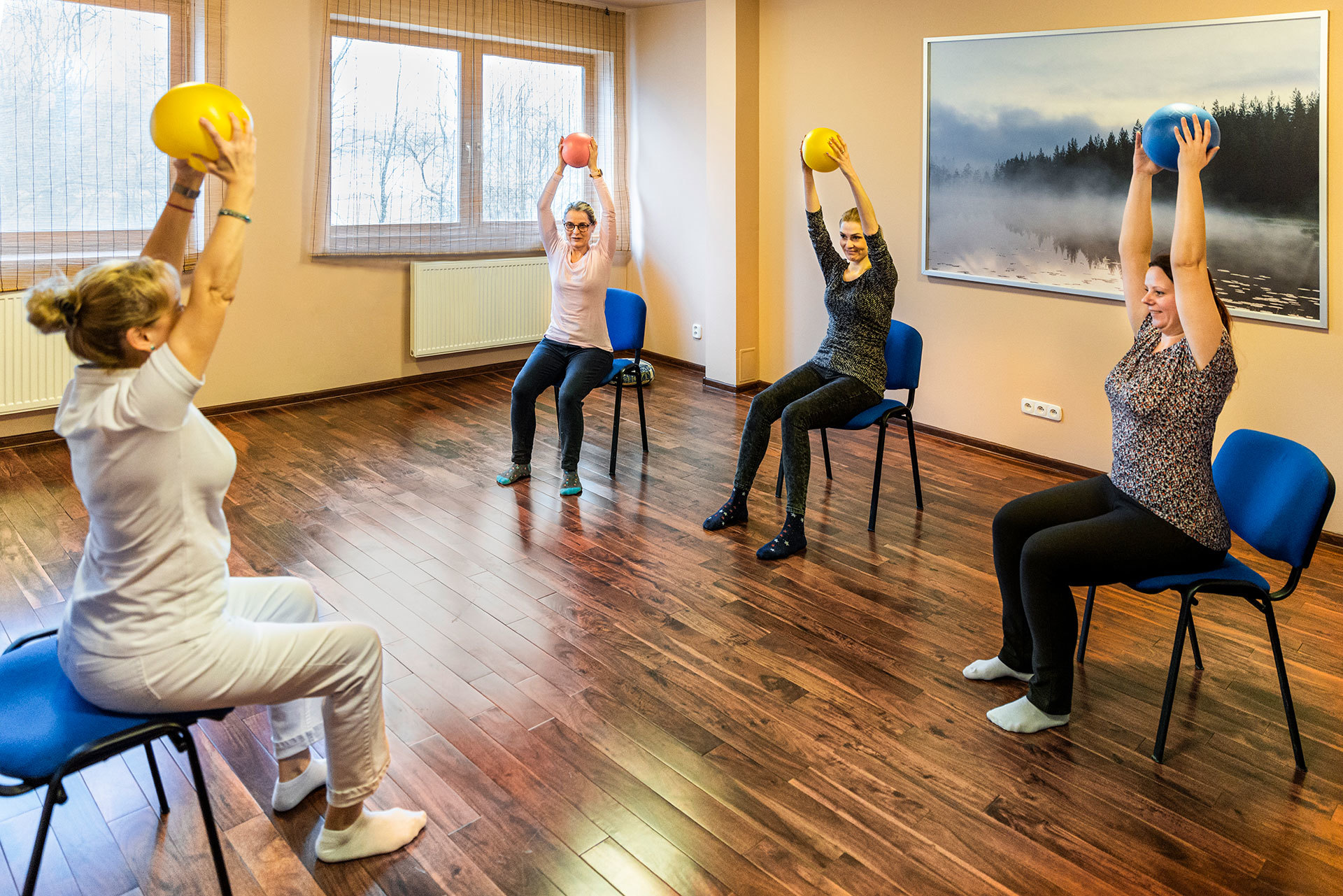 Skupinový liečebný telocvik je forma fyzioterapie, pri ktorej sa pacienti zúčastňujú cvičení v malej skupine pod vedením fyzioterapeuta. Cvičenia sú zostavené tak, aby vyhovovali spoločným potrebám skupiny – často ide o pacientov s podobnou diagnózou alebo problémom (napr. bolesti chrbtice, skolióza, pooperačné stavy). SLTV podporuje motiváciu, sociálny kontakt a vytvára príjemné prostredie na pravidelný pohyb. Cvičenia sú zamerané na zlepšenie mobility, sily, koordinácie a stability. Fyzioterapeut dbá na správne vykonávanie pohybov a individuálne prispôsobenie v rámci skupiny. SLTV má aj preventívny charakter – pomáha predchádzať opakovaným problémom pohybového aparátu. Procedúra trvá 20 minút.