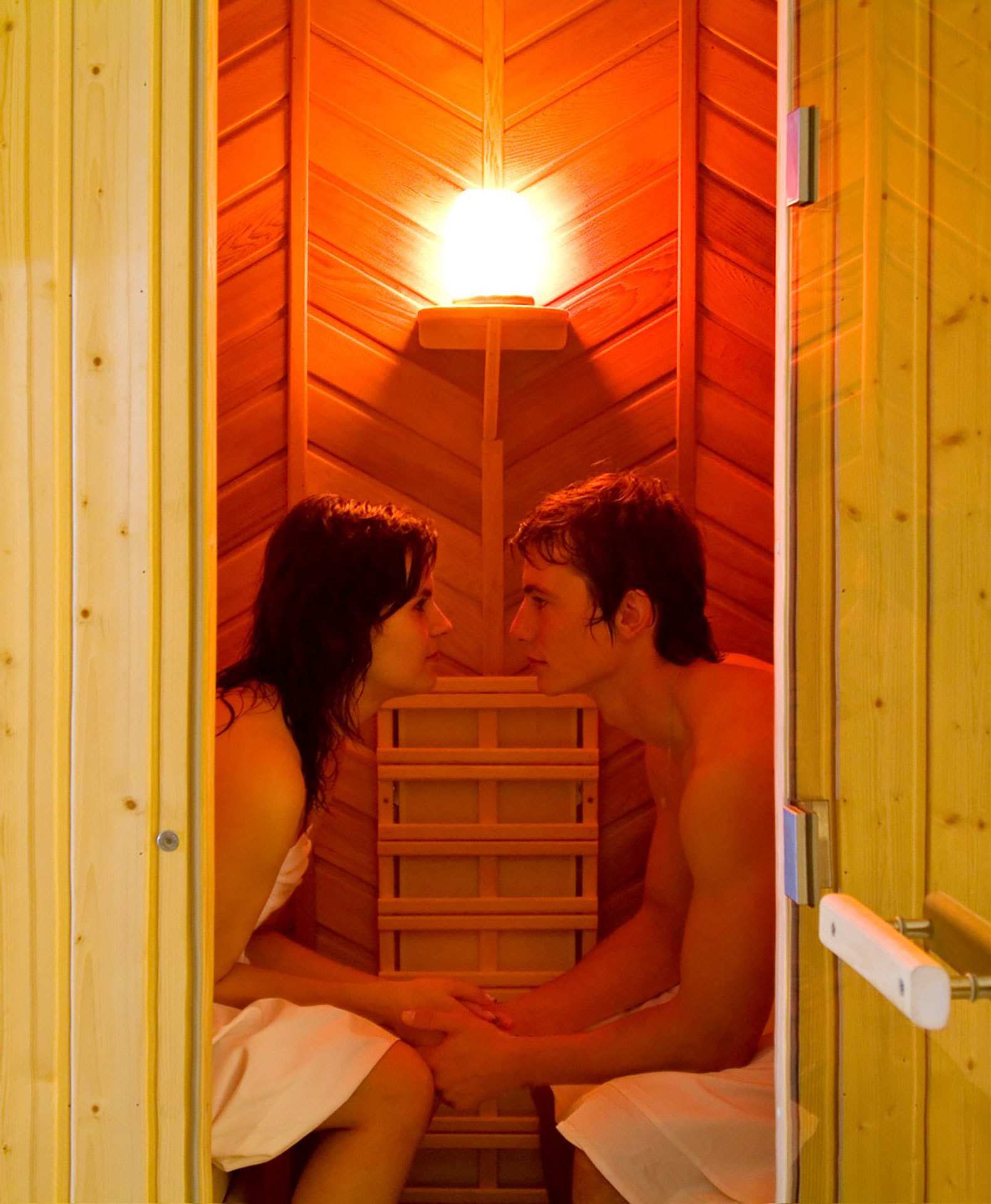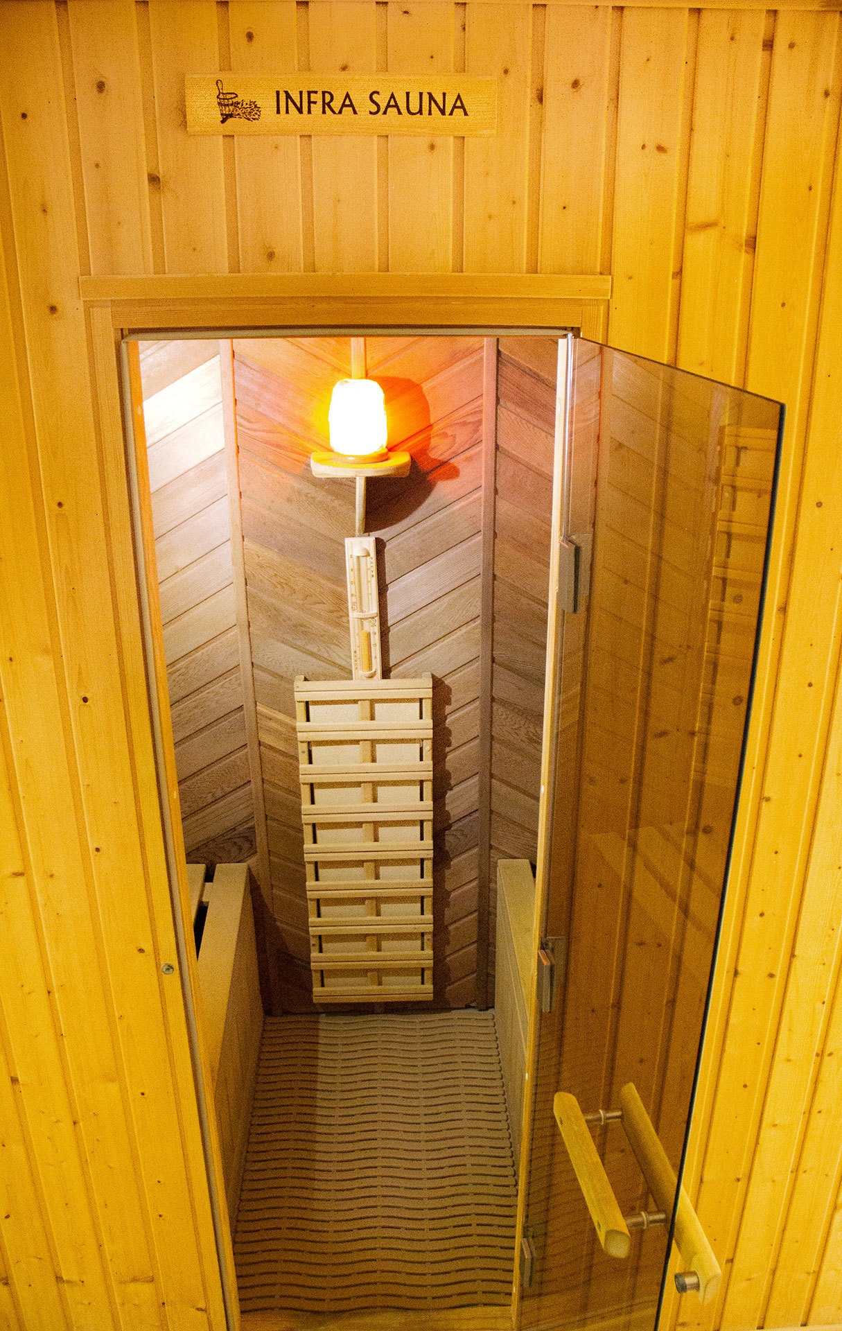 Infračervené žiarenie zahrieva telo priamo, bez zahrievania vzduchu. Vzhľadom na nižšiu teplotu ako je vo fínskej saune, t.j. 35 – 60 °C, je infra sauna vhodnejšia pre klientov, ktorí netolerujú horúcu fínsku saunu. Veľmi účinne detoxikuje organizmus, odstraňuje nečistoty z kože, znižuje bolesť chrbta a kĺbov, uvoľňuje svalové napätie, zrýchľuje krvný a lymfatický systém. Saunovanie trvá 2 hodiny.